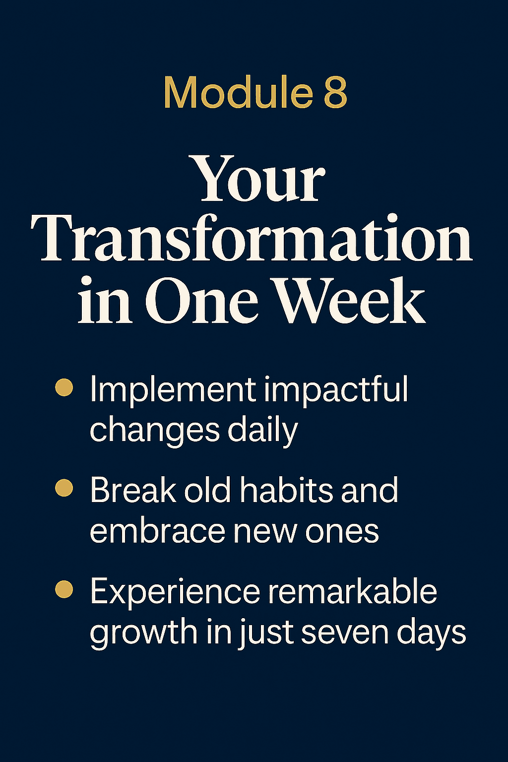 This module helps you reduce constant mental pressure and stop the “always on” feeling. You learn to recognize early stress signals and use short reset techniques to calm your nervous system. The result is more mental clarity, emotional balance, and sustainable energy during your day.